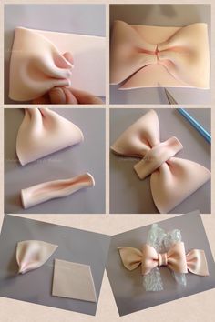 4. Loop each piece in half to form the bow bits of your bow (are we just talking gobbledegoop now?!), and use a little brush and some edible glue to stick the four pieces together as desired.