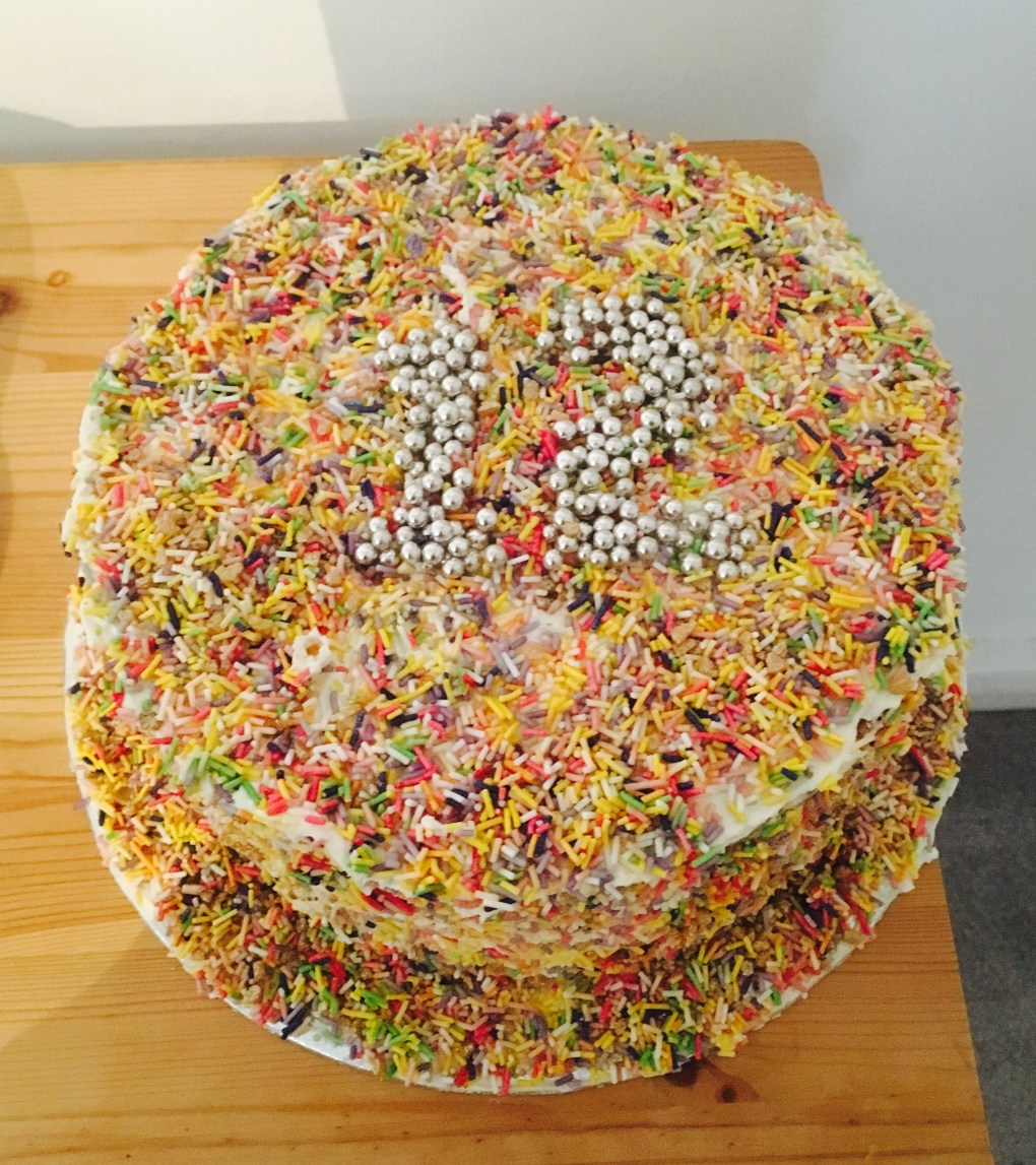 We’re generally of the opinion that more is more when it comes to cake. A thick layer of buttercream? Yes please. Smarties and Maltesers and stars and extra chocolate and a candle? Oh yes! Yes, yes, yes and YES! In fact, this totally amazing cake on the left here, which we’ve affectionately called the Explosion in a Sweet Shop cake, made by our baker Rose last year, is what we reckon kids would conjure up if they were charged with creating a birthday cake. The only way it could be improved would be to douse it in edible glitter. Glitter is always good, especially when a tiny fleck of it somehow gets indefinitely stuck to a serious person’s face and glints in the light every time they move, like the glitter equivalent of *JAZZ HANDS*!