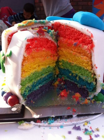 Then there was THIS cake – a cake (made for the E8 Community dream drawing exhibition) that looked like an explosion in an art shop. Just incredible. And, as if the outside wasn’t amazing enough, inside there was a rainbow. An actual rainbow made out of cake. Sigh.
